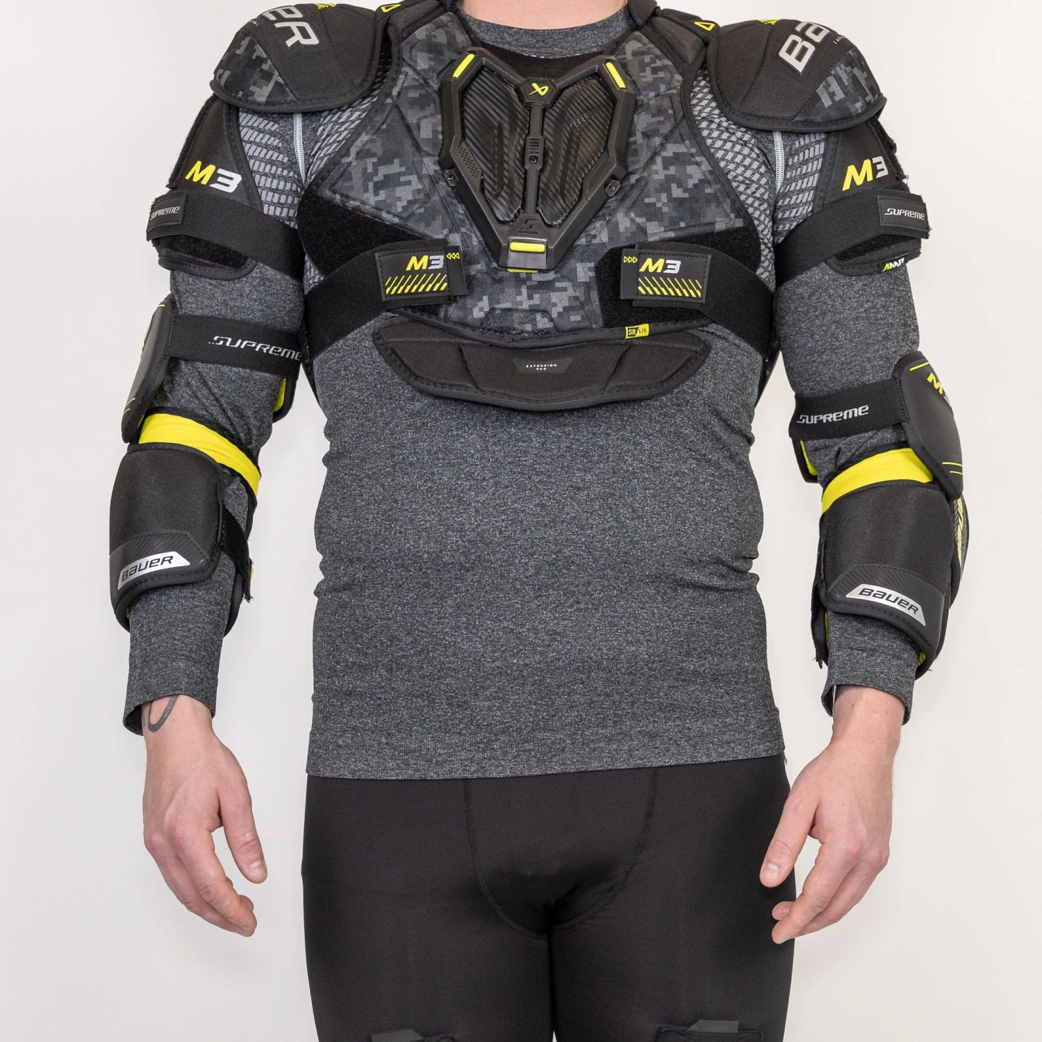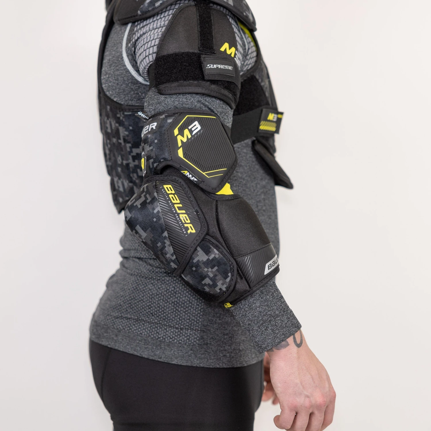Experience the next level of protection and performance with the new Supreme Mach protective line from Bauer for the 2023 season. The gear is designed to offer great protection against impact in all directions while still allowing for lots of maneuverability. The M3 is competitive-level equipment designed for comfort and safety while keeping to a more affordable price point. Features include a split forearm design, a Thermomax sub liner, and a 2-piece cap construction.