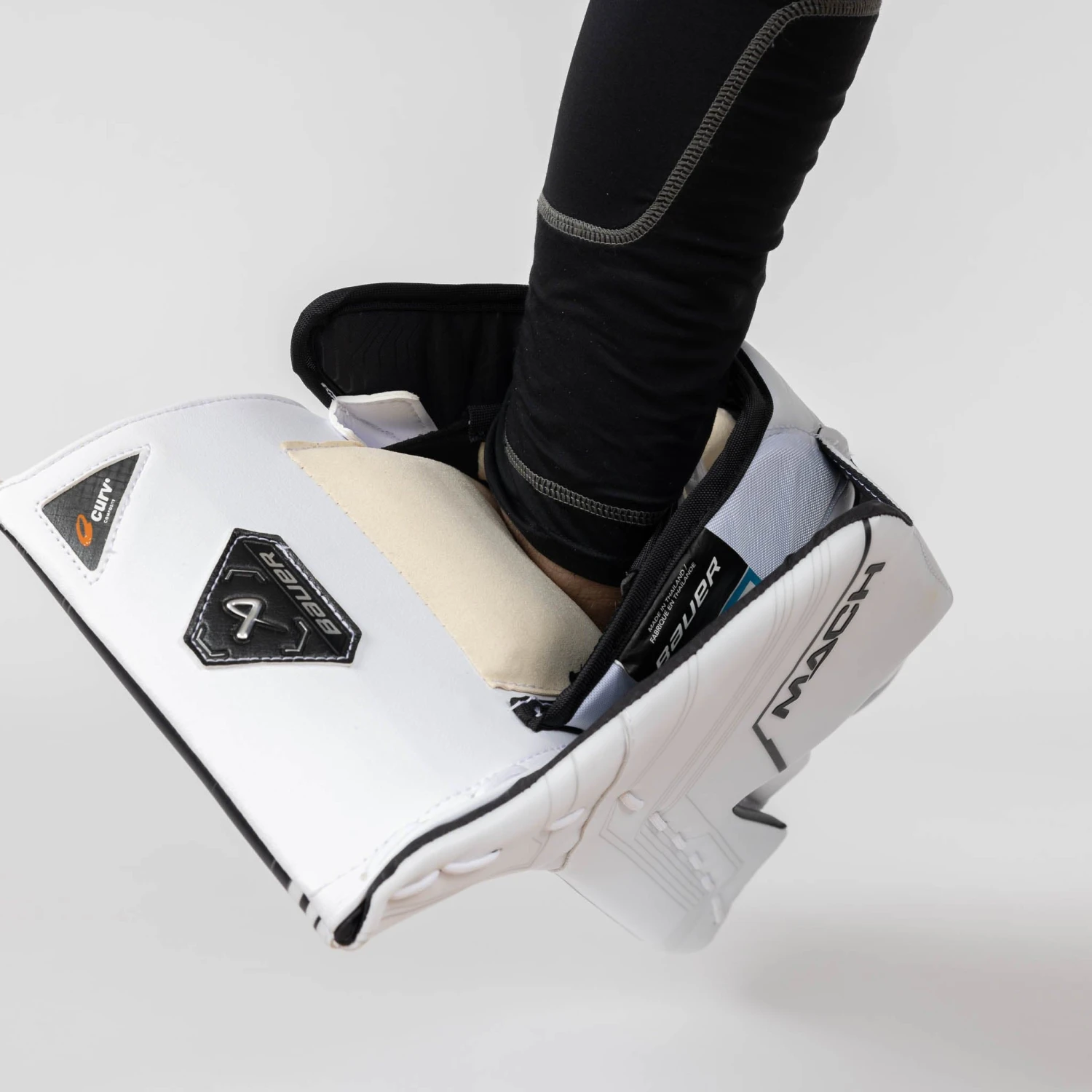 Bauer included adjustable velcro finger protection reinforced with Poron XRD foam right above the fingers on the new Mach blocker. The protection plates are also furnished with carbon CURV composite for additional toughness in that delicate area. Poron XRD has amazing absorbent and lightweight properties, making this foam ideal for covering your hands.