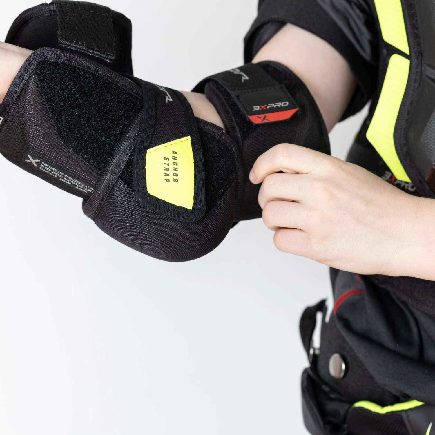 The Vapor 3X Pro elbow pads use comfort anchor straps to fasten everything in place. Anchor straps are tougher than standard straps but won’t hinder movement. This strapping system can be found across the 3X Pro series.