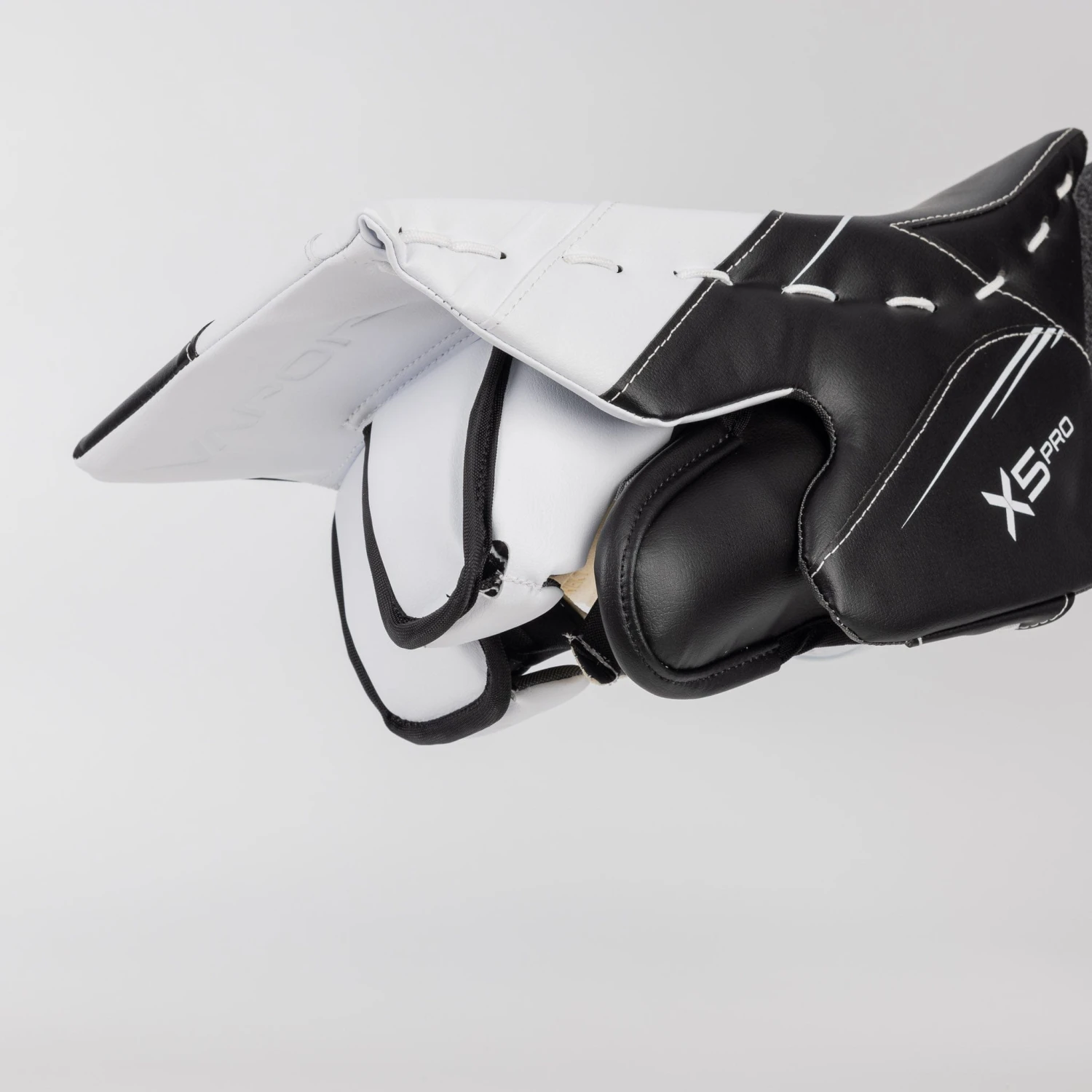 The fingers have been reinforced with Shocklite Shields in the X5. Shocklite is designed to be lightweight and flexible, allowing for greater mobility and comfort while also providing excellent impact protection. It absorbs and disperses impact energy, making it easier to make saves with confidence.