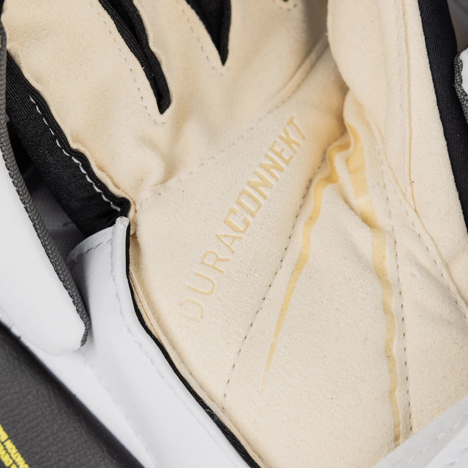 The Duraconnekt palm on the Vapor X5 is made from a combination of durable synthetic materials, including nylon and polyester, which are engineered to withstand the wear and tear of frequent use. This additionally makes the palm more resistant to abrasions, tears, and other types of damage, helping extend the life of the blocker. The Duraconnekt palm also provides excellent grip, thanks to its textured surface, helping goalies maintain a secure hold on their stick throughout the game.