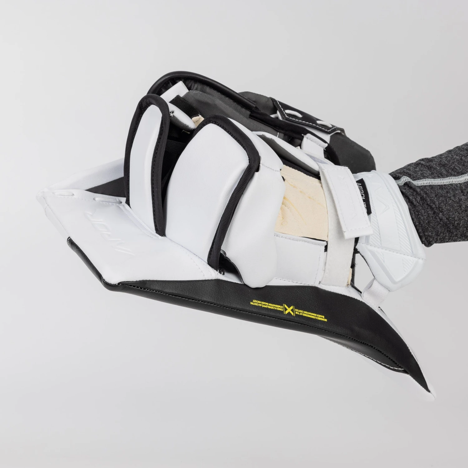 Bauer has incorporated molded F1 into the side plate of the Vapor X5 blocker. By molding the foam into a more contoured shape around the hand, Bauer is able to create a customized fit that provides better protection and support for the goaltender. The molded foam design is more streamlined and ergonomic, intending to improve the goalie’s mobility and flexibility.